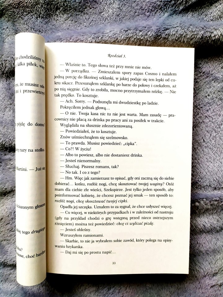 Nie będę Wam szczegółowo opowiadać o fabule, bo nawet najmniejsza wzmianka, mogłaby Wam zasugerować, jak potoczą się ich losy. Historia tych dwojga to istny rollercoaster. I nie piszę tu jedynie o wątku erotycznym, bo przede wszystkim ta książka ma fabułę… Czyli coś, co jest najważniejsze w literaturze kobiecej. Ciekawe wątki, barwni bohaterowie z bagażem doświadczeń, cięty język i dobry humor, to coś co lubię. Książka opowiada o miłości i o jej braku, o wychowaniu, które jest bardzo ważne w życiu, o odpowiedzialności i o Fortunie, która nie dla wszystkich jest łaskawa.