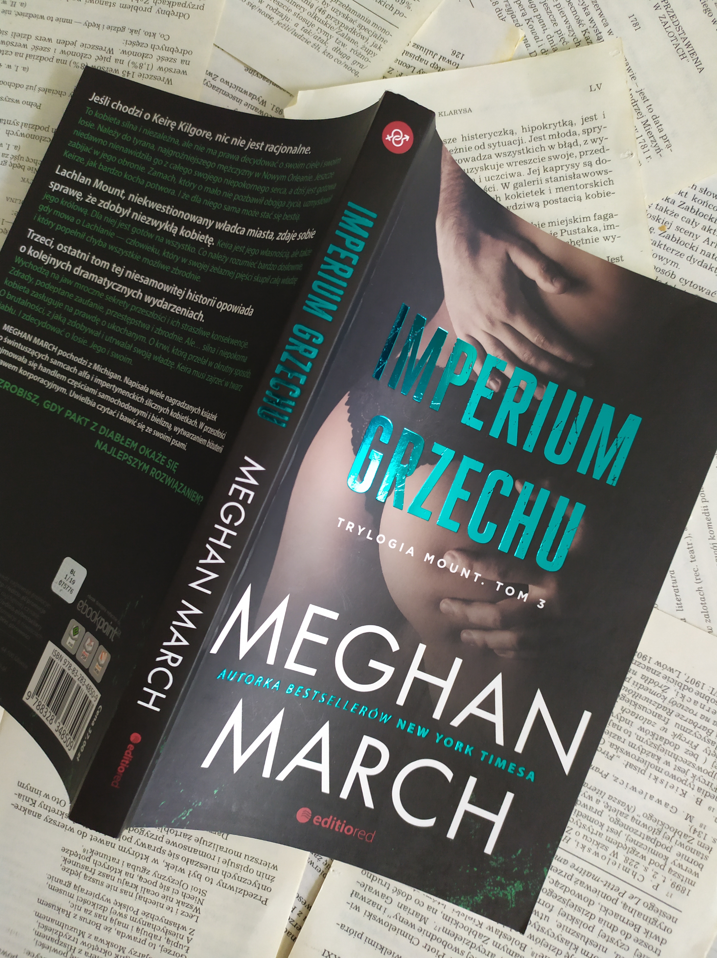 „Imperium grzechu” skusiło mnie fragmentem, który Wydawca miał na stronie. Była tam scena wypadku i mężczyzna strasznie przeżywał, że jego ukochana nie odzyskuje przytomności. Opis tej sceny był tam tak emocjonujący, że znów nie zwróciłam uwagi, że jest to kontynuacja serii. Ale o dziwo nie przeszkadzało mi to w przeczytaniu całej książki.