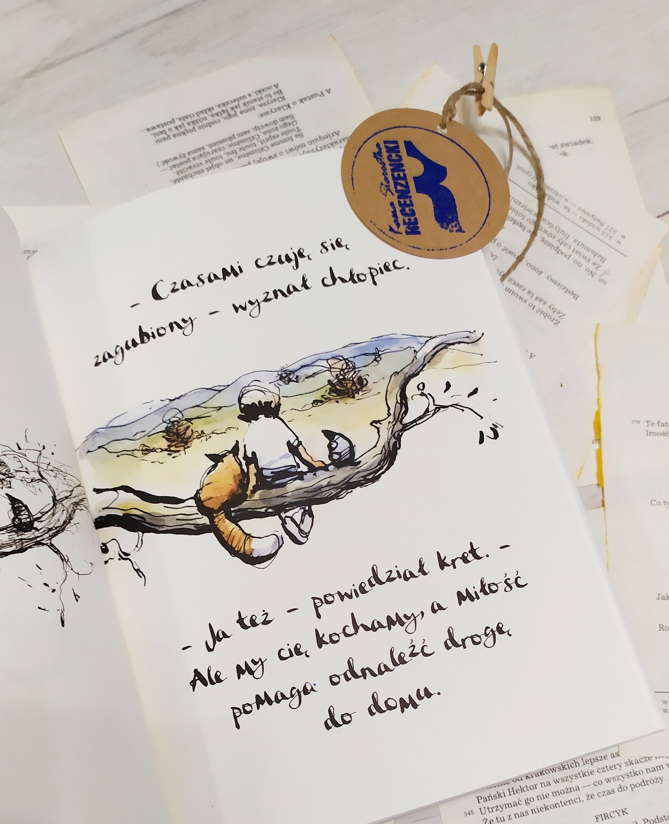 Jest to jedna z piękniejszych książek, jakie dotychczas miałam w swoich rękach. Taka, w której może się zanurzyć zarówno dziecko, jak i dorosły. Nie myli się Wydawca. Ta książka to takie trochę połączenie Kubusia Puchatka z Małym Księciem. Przepełniona pięknymi słowami i jeszcze piękniejszymi ilustracjami, w których zakochałam się od pierwszego wejrzenia.